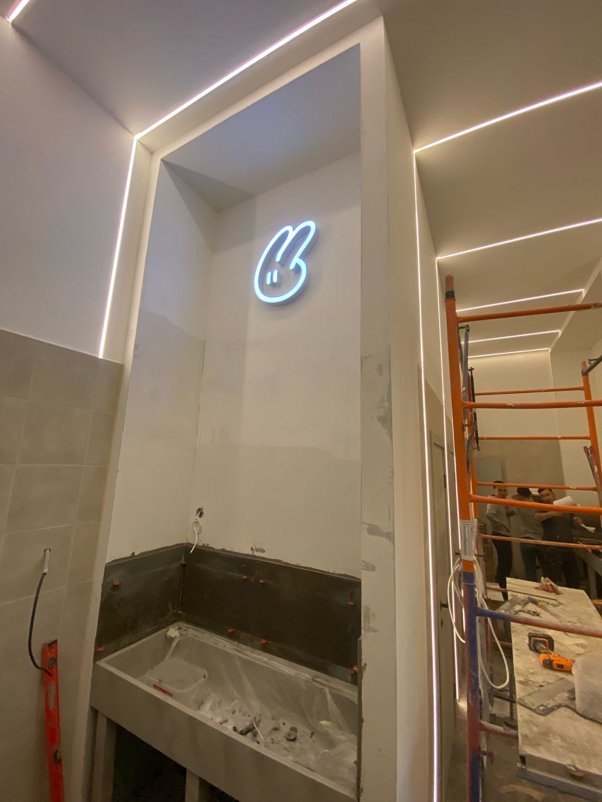 Производственные затраты. Резка и формовка элементов вывески будет стоит около 3000 рублей, а сборка и монтаж подсветки — 4000 рублей.