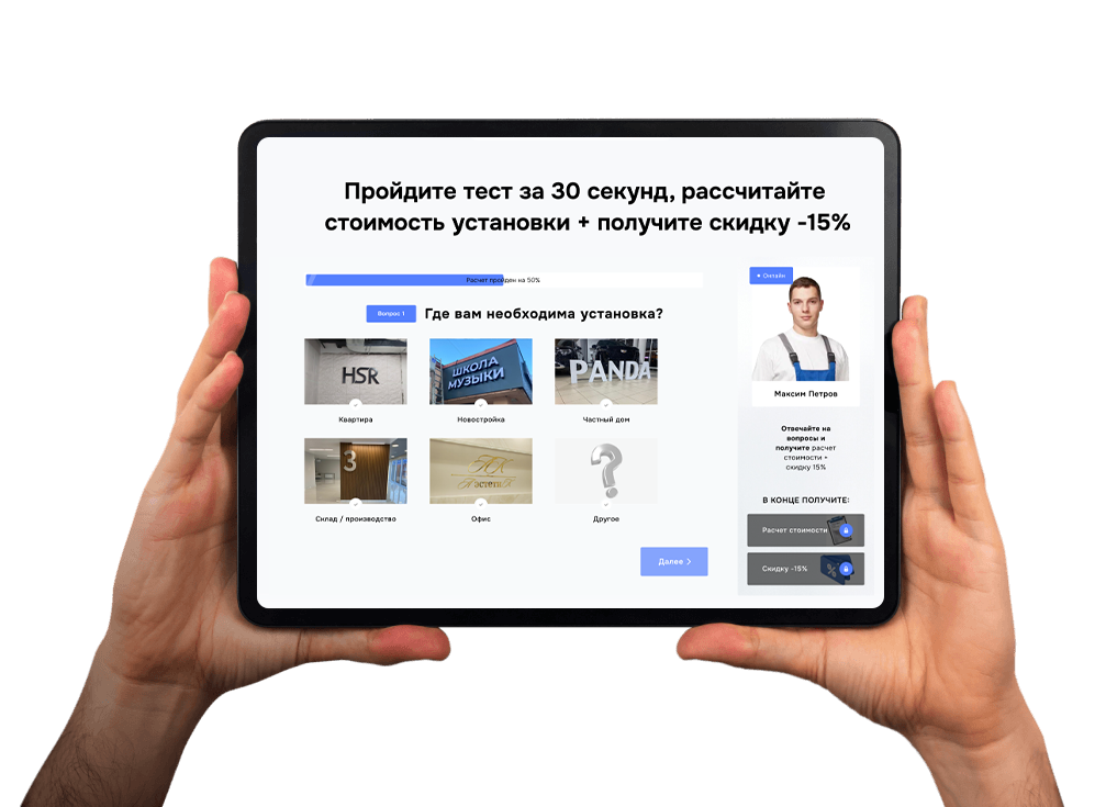 Пройдите тест за 30 секунд и рассчитайте стоимость вывески