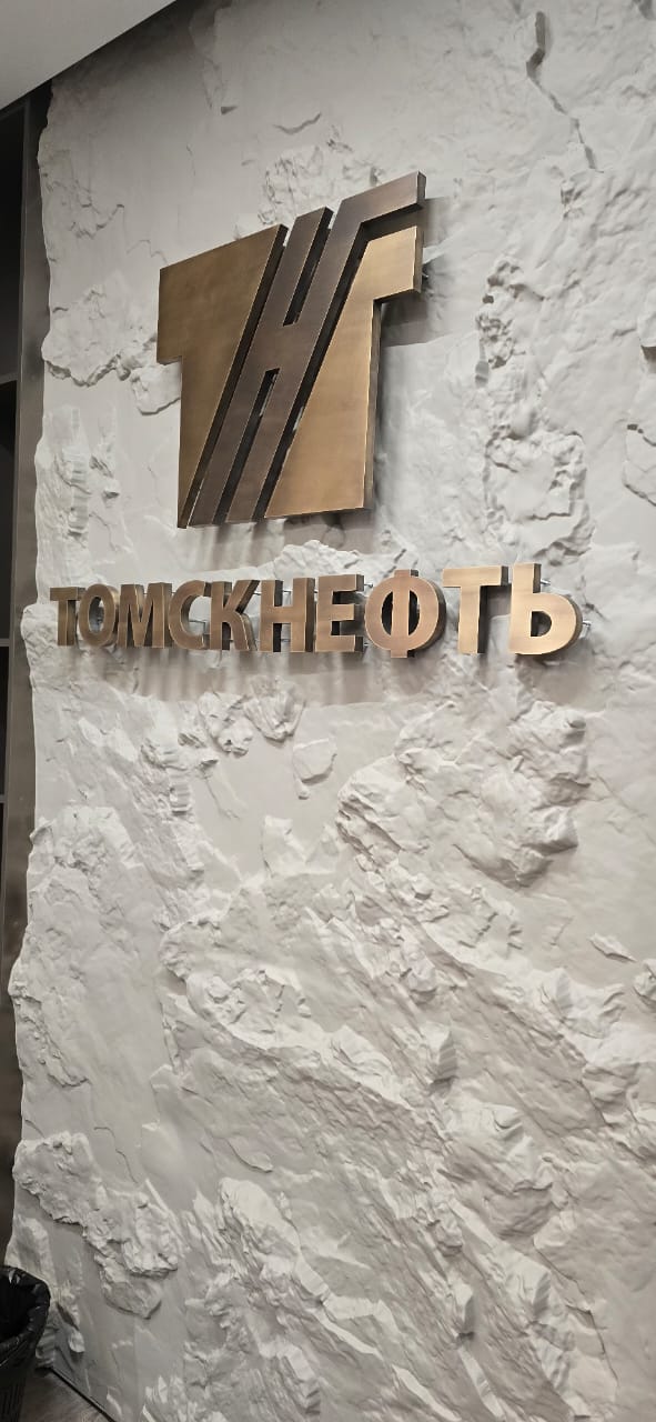 На встрече с клиентом уточнили размеры места установки (на фасаде здания), бюджет и требования к типу и дизайну объемных букв без подсветки. Дизайнеры предложили несколько вариантов, и клиент выбрал объемные буквы из ПВХ пластика толщиной 18 см. При помощи 3D-макета определились со шрифтом без засечек, белая палитра.