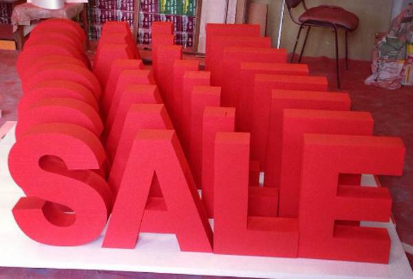 Заказчик — сеть магазинов одежды — обратились к нам для изготовления объемных букв из пенопласта, которые бы привлекли внимание посетителей. Основные требования при исполнении заказа: