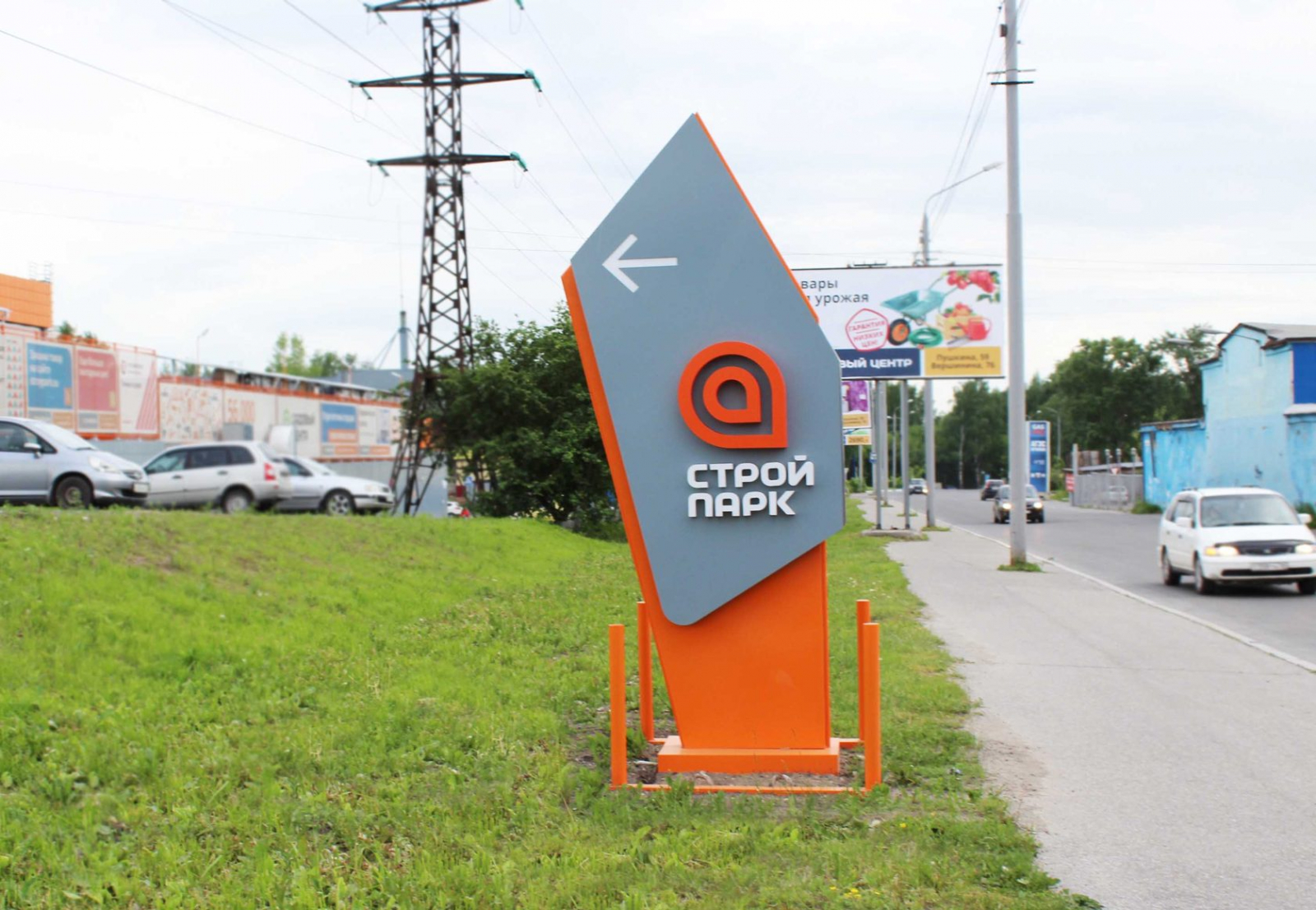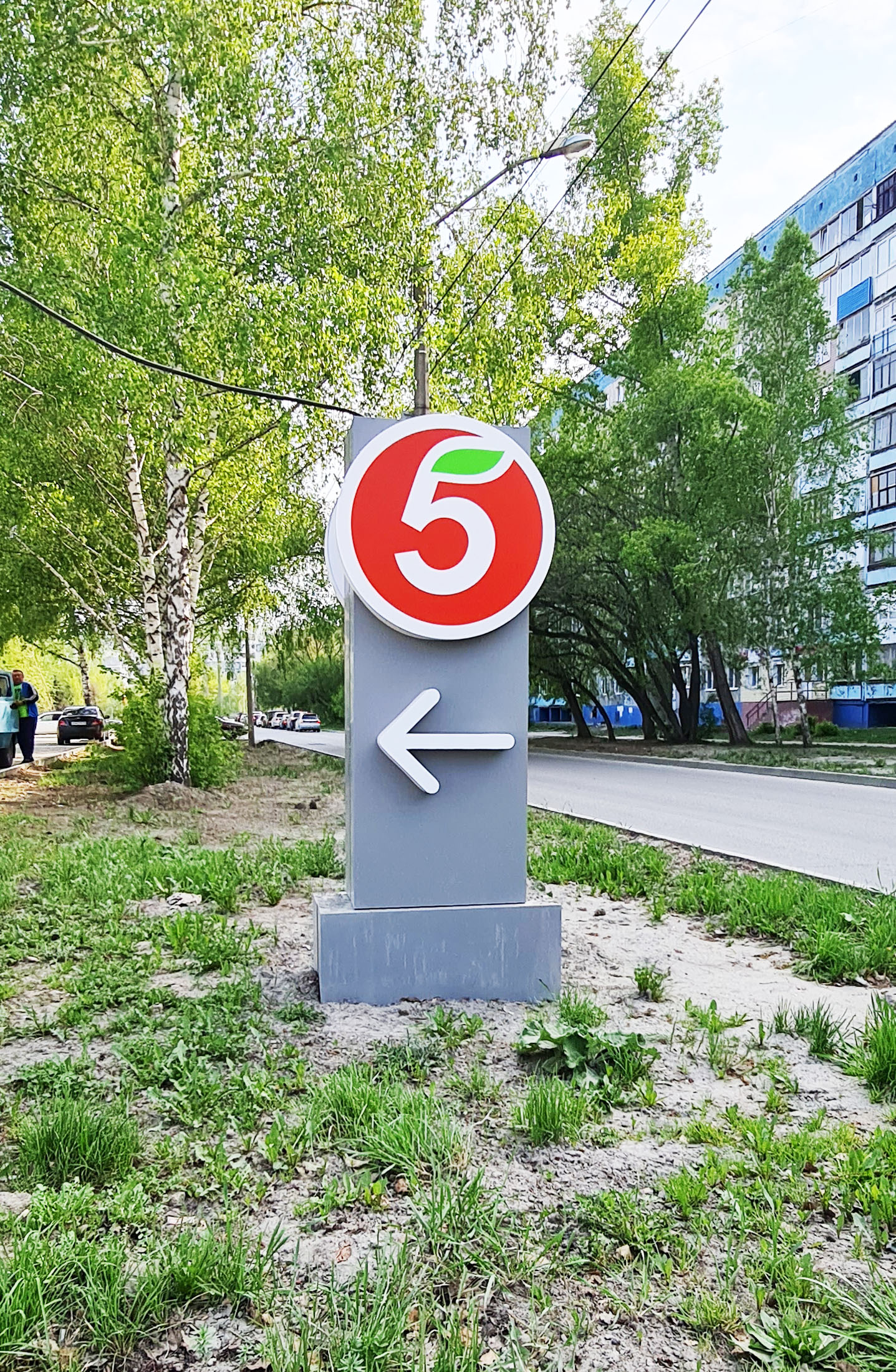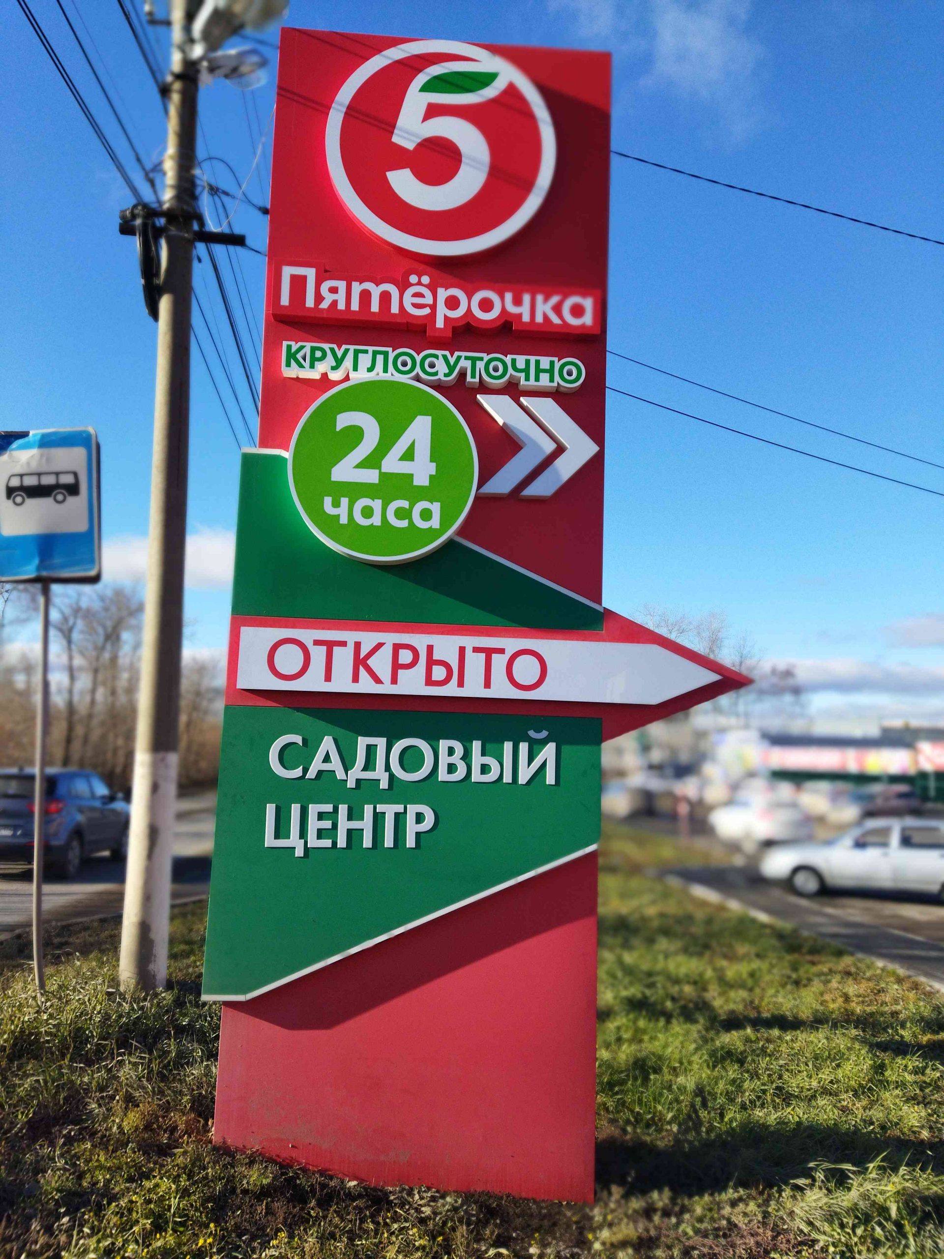 Рекламная стела изготовлена из нескольких основных материалов. Основой конструкции служит прочный металлический каркас, который обеспечивает необходимую устойчивость и долговечность всей конструкции. Для создания внешнего короба использовали пластик, который отличается высокой прочностью и устойчивостью к внешним воздействиям.