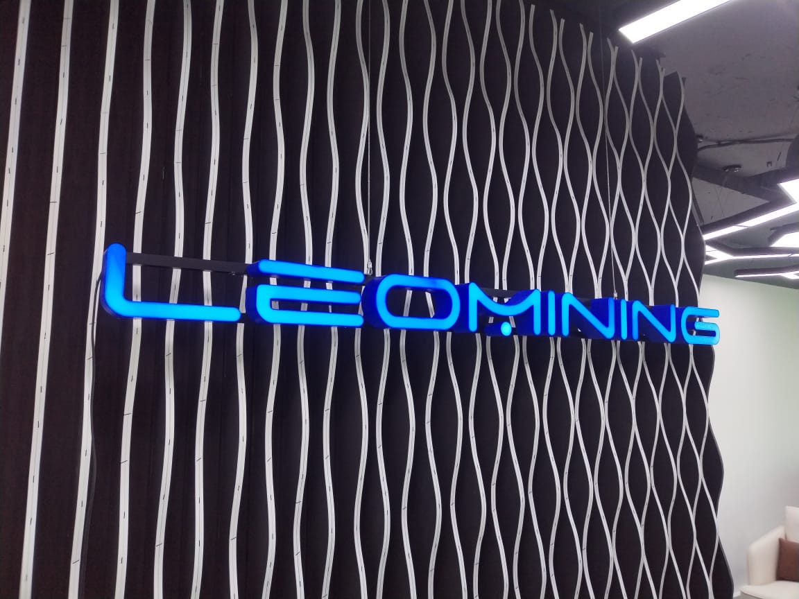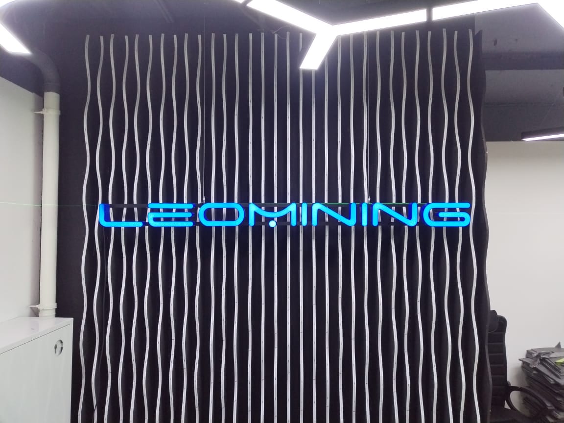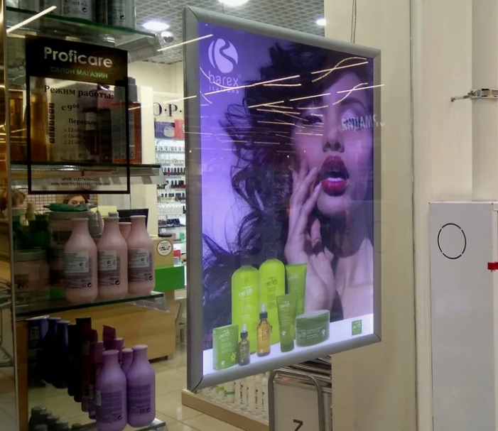 Задняя стенка изготовлена из ПВХ пластика, на которую прикреплены светодиоды. На каркас из профильной металлической трубы установили алюминиевый (пластиковый) профиль, который оклеили пленкой Oracal. Лицевую часть сделали из акрила, оклеив ее аппликацией из виниловой светорассеивающей пленки.