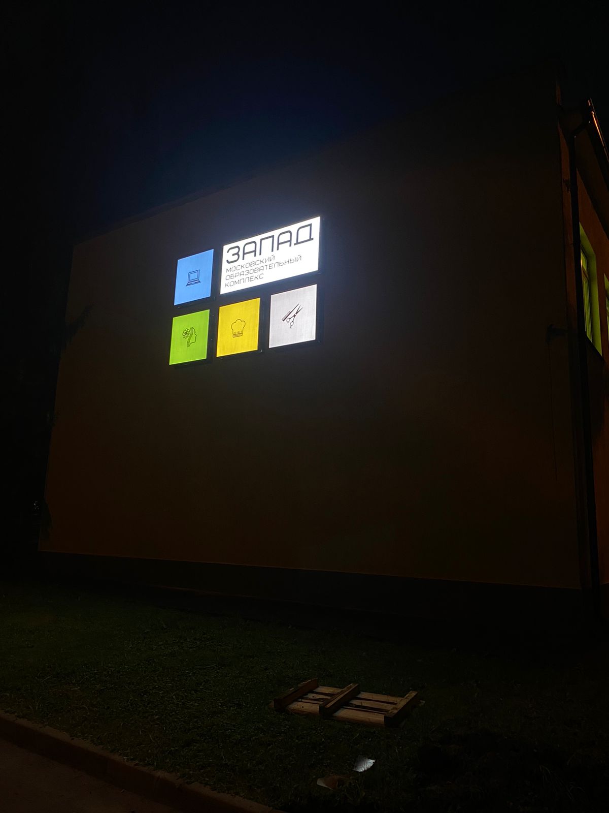 Доставка и монтаж требовался по адресу: Юбилейный просп., 43, Реутов. Вывеска с влагозащитой IP67 установлена на торце здания. Для разметки отверстий использован лазерный уровень. В просверленные отверстия вставили химические анкеры. Кабели уложили в кабель-канал и спрятали за вывеской. Вывеска установлена с учётом требований к обслуживанию и очистке светового короб с баннером. Установка вывески произведена на панель-кронштейн. На монтаж ушло 30 минут.