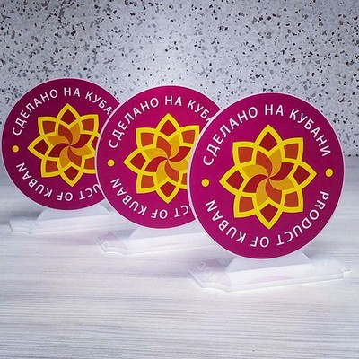 Для проекта была изготовлена большая прямоугольная табличка из прозрачного акрила размером 1200×500 мм. На поверхность методом прямой УФ-печати нанесено оформление с использованием цветного шрифта (синий, красный, голубой), логотипа и тематических иконок. Такая технология позволила добиться высокой чёткости изображения, яркости цветов и долговечности вывески.