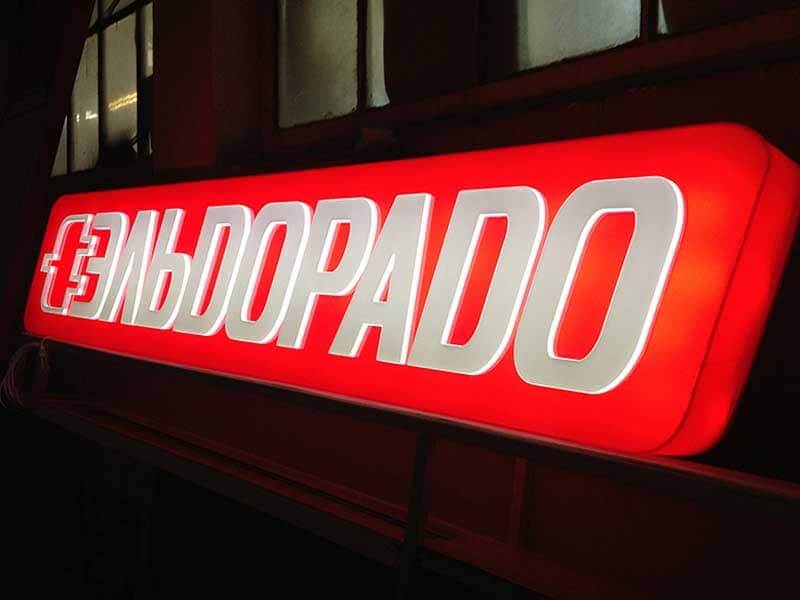 Светящиеся буквы, логотипы и другие изображения на фоне короба — универсальный вид рекламной конструкции. Такие вывески заказывают для размещения и на улице, и в интерьере. Но чаще всего короба с инкрустацией можно увидеть на вывесках магазинов, ресторанов и других заведений внутри торговых центров, а также на интерьерных рекламных пилонах.