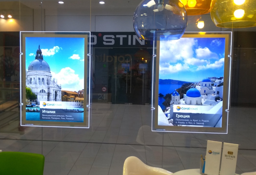 В аптечных сетях crystalight используют для продвижения выгодных акций, скидок и новых препаратов. Панели монтируют на стены или между оконными рамами, что особенно эффективно для привлечения прохожих. Четкая подсветка делает текст и изображения хорошо заметными даже в дневное время.