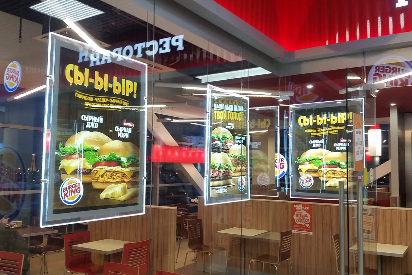 В заведениях общественного питания световые панели кристалайт показывают: меню и рекламу. Их размещают на стенах или стойках, чтобы гости могли быстро просмотреть популярные блюда, акции или сезонные предложения. Яркие изображения еды стимулируют аппетит и увеличивают средний чек.