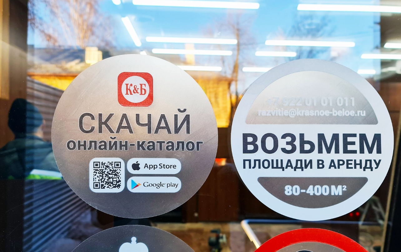 С постоянным клеевым слоем — для долговечных наклеек: вывески, витрины, интерьерная реклама. Со съемным клеевым слоем — для временной рекламы: акции, сезонные предложения, краткосрочное оформление.