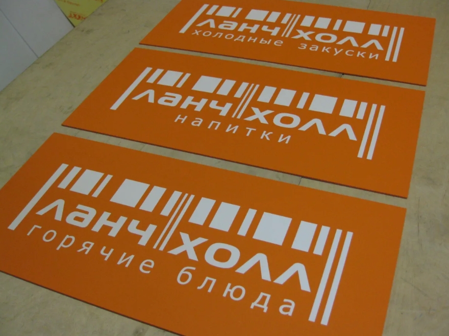 Выбор материала зависит от задач. Для уличной рекламы больше подойдут пластик и металл, для интерьера — стекло или дерево. Главное для долговечности изображения правильно подготовить поверхность.